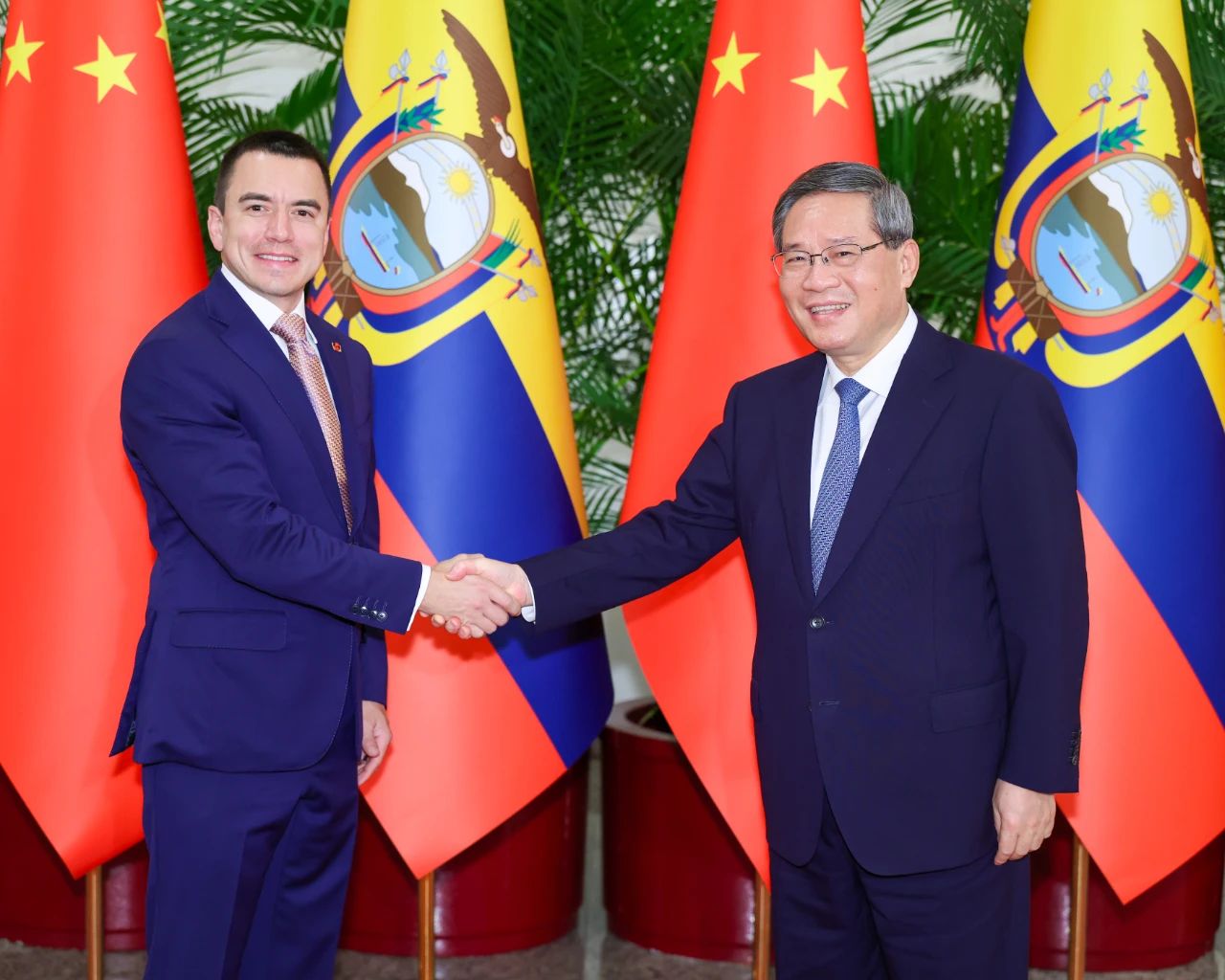 李強指出,中厄同為發(fā)展中國家,都把發(fā)展經(jīng)濟、改善民生作為重要任務。中方愿同厄方加強發(fā)展戰(zhàn)略對接,密切“一帶一路”合作,擴大雙邊貿(mào)易規(guī)模,深化在清潔能源、基礎設施、金融等領域合作。中方樂見更多厄方優(yōu)質(zhì)產(chǎn)品輸華,歡迎厄方用好進博會等推介平臺。雙方要繼續(xù)加強教育、文化、青年等領域交流合作,便利人員往來,夯實兩國關(guān)系的民意基礎。中方愿同厄瓜多爾等拉美和加勒比國家一道,以共建中拉命運共同體“五大工程”為契機,在實現(xiàn)現(xiàn)代化的道路上攜手前行。中方也愿同厄方加強在聯(lián)合國等多邊機制的溝通協(xié)調(diào),踐行真正的多邊主義,為維護世界和平和發(fā)展、推動構(gòu)建人類命運共同體作出積極貢獻。