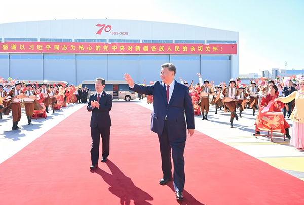 習近平在出席新疆維吾爾自治區(qū)成立70周年慶祝活動后返回北京