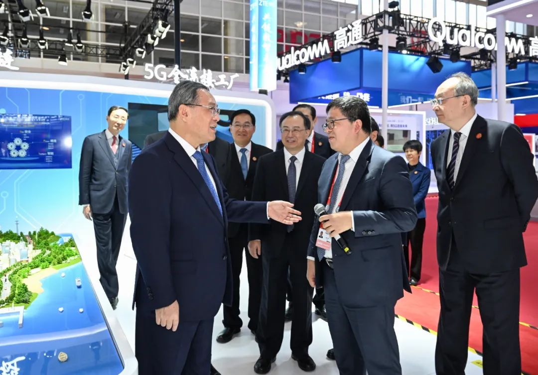 開幕式前,李強(qiáng)到鏈博會(huì)展館巡館并與有關(guān)企業(yè)負(fù)責(zé)人互動(dòng)交流。