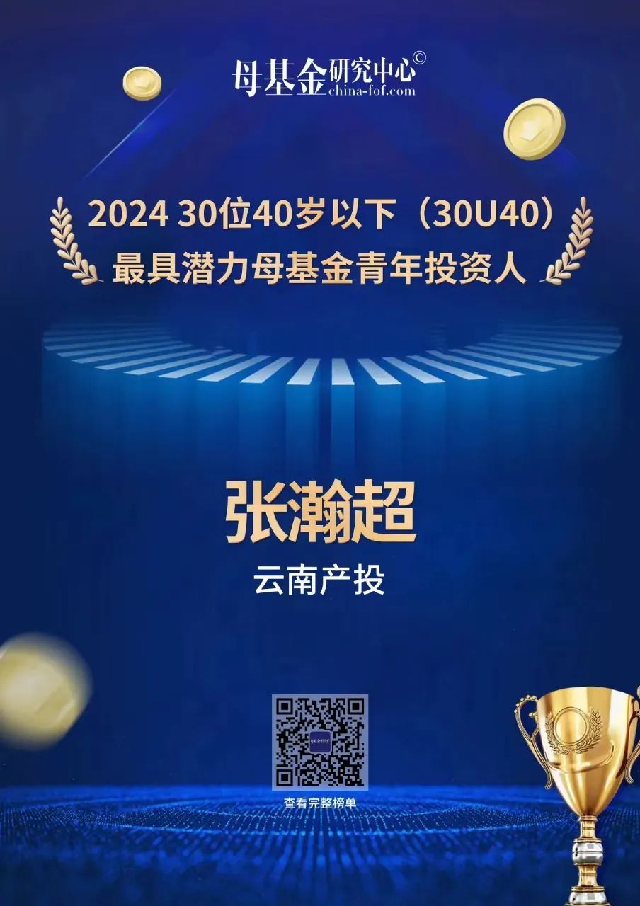 “五四”青年節(jié)之際,中國母基金研究中心評選出“2024優(yōu)秀青年投資人榜單”,集團(tuán)旗下云南產(chǎn)投公司投資經(jīng)理張瀚超榮登“最具潛力母基金青年投資人Top30榜單”。