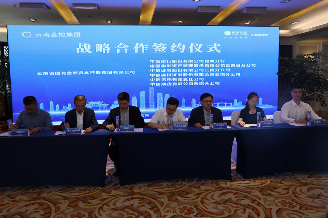 9月5日,集團總裁葉智勇率隊與中信集團協(xié)同委員會云南區(qū)域分會成員單位就發(fā)揮中信集團協(xié)同優(yōu)勢、進一步深化各領域全面合作舉行座談,并與中信集團在滇金融聯(lián)合體6家單位(中信銀行、中信證券、華融資產(chǎn)、中信建投、中信信托、中信期貨)簽訂戰(zhàn)略合作協(xié)議。中信集團業(yè)務協(xié)同部副總經(jīng)理任霞見證簽約。