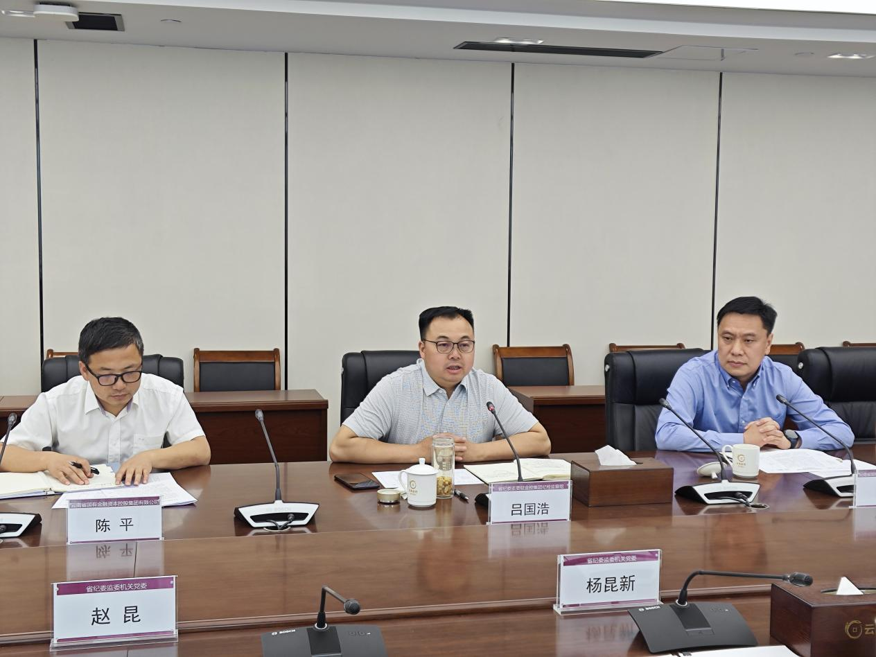 呂國浩同志介紹了召開本次調(diào)研交流會的背景,轉(zhuǎn)達了集團總裁、黨委副書記、副董事長葉智勇同志關(guān)于“金控集團要認真落實省紀委監(jiān)委要求,支持助力丘北縣鞏固脫貧攻堅成果、推進鄉(xiāng)村振興并抓好今天調(diào)研交流要求貫徹落實”的意見,對省紀委監(jiān)委機關(guān)黨委到駐金控集團紀檢監(jiān)察組調(diào)研交流表示熱烈歡迎與誠摯感謝,詳細介紹了集團的基本情況、組織架構(gòu)、干部隊伍、經(jīng)營業(yè)績、職能職責等。
