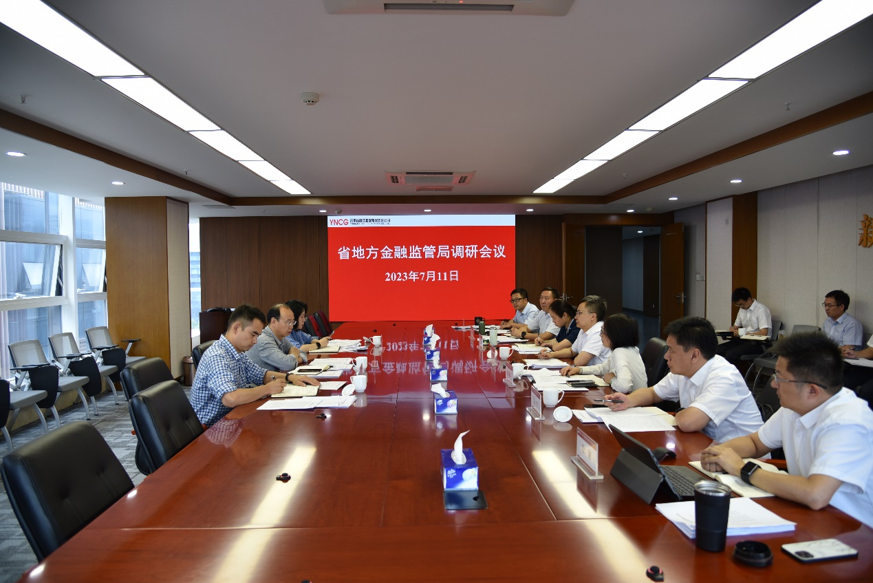 7月11日下午,云南省地方金融監(jiān)管局左廣局長一行到集團(tuán)所屬省融資擔(dān)保公司調(diào)研,與集團(tuán)葉智勇總裁、蔡瓊副總裁和融擔(dān)公司班子交流座談。