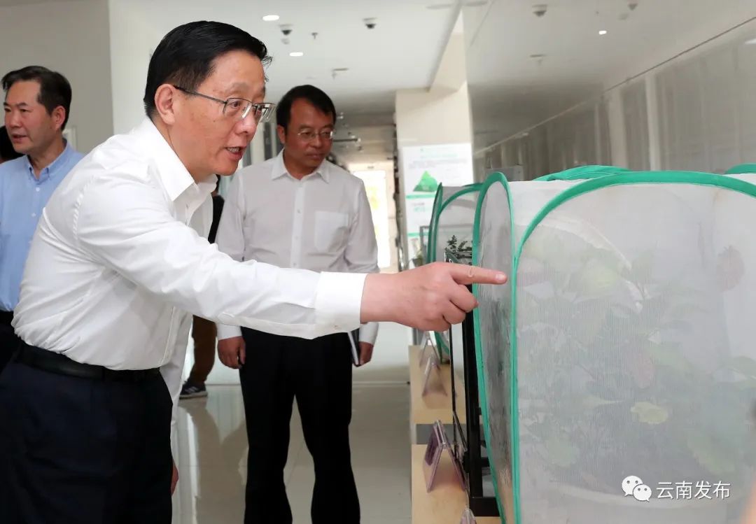王予波在昆明動物研究所調(diào)研模式動物表型與遺傳研究設施、遺傳資源與進化國家重點實驗室、動物模型與人類疾病機理重點實驗室建設和研究工作情況,希望持續(xù)推動基礎研究與應用研究協(xié)同貫通,在探索生命科學未知領域,保障人類健康和保護生物多樣性等方面取得更多成果。在昆明植物研究所,他實地考察植物化學與西部植物資源持續(xù)利用國家重點實驗室、中國西南野生生物種質(zhì)資源庫,他指出,小小種子事關“國之大者”,希望加強多學科合作研究,在生物醫(yī)藥產(chǎn)業(yè)發(fā)展、種質(zhì)資源保護利用等領域發(fā)揮更大作用。在與中外科學家現(xiàn)場交流時,王予波說,云南是“動物王國”“植物王國”,開展科學研究空間無比廣闊。希望大家把個人價值與國家戰(zhàn)略、云南需求緊密結合起來,大膽探索創(chuàng)新,多出研究成果。