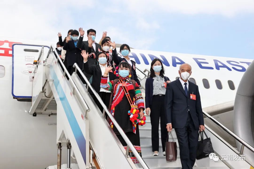 ?10月24日中午,云南省出席中國(guó)共產(chǎn)黨第二十次全國(guó)代表大會(huì)的代表,在圓滿完成大會(huì)各項(xiàng)任務(wù)后,乘飛機(jī)回到昆明。