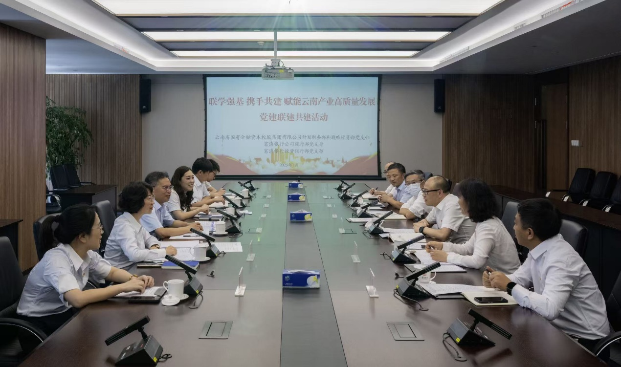 為深入學(xué)習(xí)習(xí)近平新時(shí)代中國(guó)特色社會(huì)主義思想以及習(xí)近平總書(shū)記關(guān)于經(jīng)濟(jì)金融工作的重要指示批示精神,貫徹落實(shí)黨的二十大及二十屆二中、三中全會(huì)精神,7月30日,富滇銀行投資銀行部黨支部、公司銀行部黨支部與集團(tuán)計(jì)劃財(cái)務(wù)部和戰(zhàn)略投資部黨支部在富滇銀行總行開(kāi)展“聯(lián)學(xué)強(qiáng)基?攜手共建?賦能云南產(chǎn)業(yè)高質(zhì)量發(fā)展”黨建聯(lián)建共建活動(dòng),發(fā)揮黨建引領(lǐng),促進(jìn)金融企業(yè)交流合作,服務(wù)地方實(shí)體經(jīng)濟(jì)。