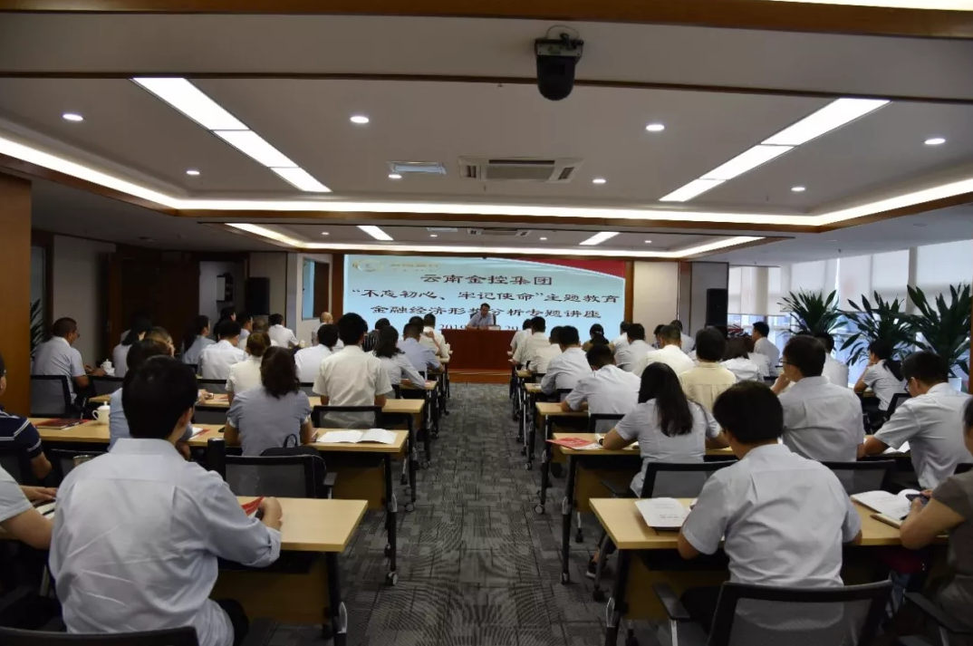 ? ?根據(jù)云南金控集團(tuán)“不忘初心、牢記使命”主題教育集中學(xué)習(xí)計(jì)劃安排,2019年6月29日,集團(tuán)黨委開展了形勢(shì)政策教育及研討活動(dòng),云南大學(xué)公共管理學(xué)院馬桑教授應(yīng)邀授課。集團(tuán)黨委書記、董事長(zhǎng)邱錄軍同志,總裁、黨委副書記、副董事長(zhǎng)趙鎮(zhèn)康同志,黨委副書記、工會(huì)主席李根斌同志,黨委委員、省紀(jì)委省監(jiān)委駐云南金控集團(tuán)紀(jì)檢監(jiān)察組組長(zhǎng)夏瓊同志與集團(tuán)總部及下屬公司員工100余人參加此次教育活動(dòng),活動(dòng)由李根斌同志主持。