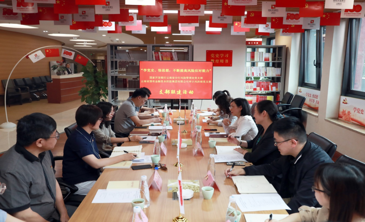 為加強與金融同業(yè)合作交流,深度推動黨建與業(yè)務(wù)融合,提高風(fēng)險防控能力,5月12日,集團(tuán)審計風(fēng)控部黨支部與國開行云南分行風(fēng)險管理處黨支部開展以“學(xué)黨史、悟思想,不斷提高風(fēng)險應(yīng)對能力”為主題的聯(lián)建主題黨日活動。集團(tuán)黨委委員、副總裁蔡瓊,國開行云南分行黨委委員、副行長姜山出席,集團(tuán)審計風(fēng)控部全體員工、國開行風(fēng)險管理處全體員工參加活動。