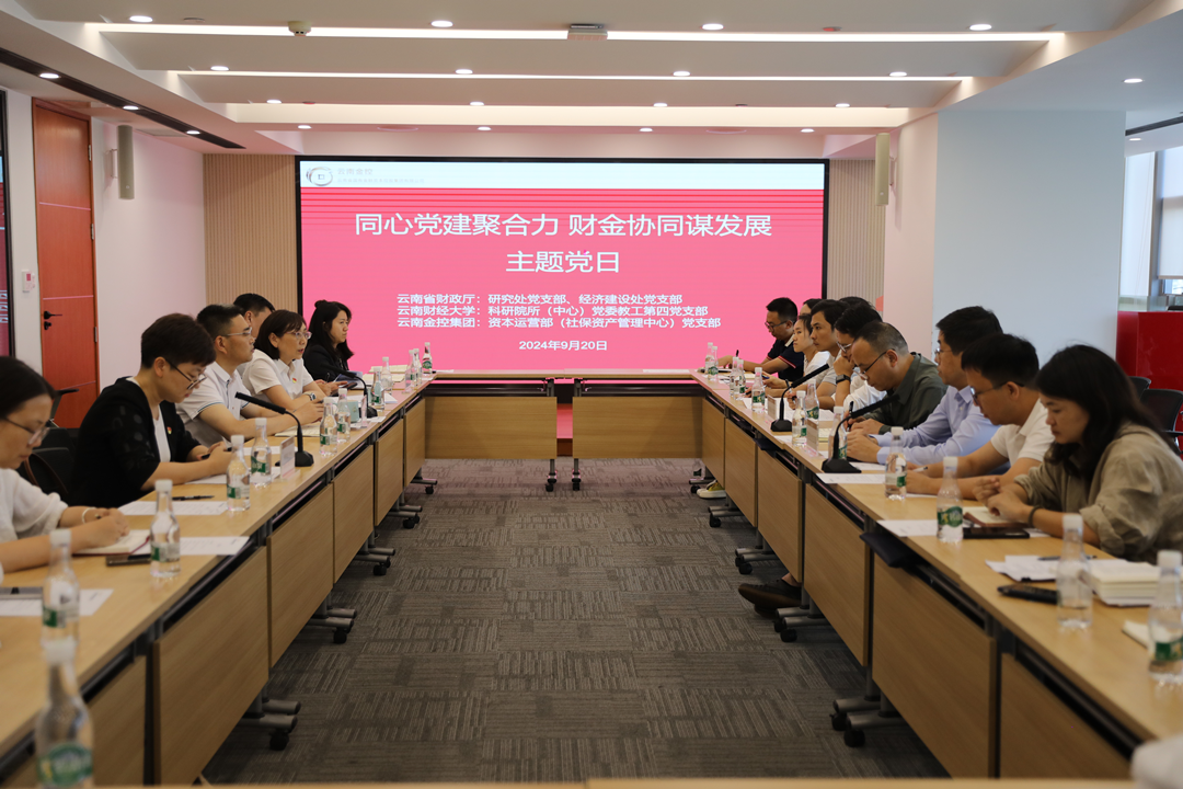 為持續(xù)貫徹落實(shí)黨的二十大、二十屆三中全會精神,充分發(fā)揮基層黨支部的戰(zhàn)斗堡壘作用,激發(fā)黨員的戰(zhàn)斗力,云南省財政廳研究處黨支部、經(jīng)濟(jì)建設(shè)處黨支部、云南財經(jīng)大學(xué)科研院所(中心)黨委教工第四黨支部和云南金控集團(tuán)資本運(yùn)營部黨支部開展以“同心黨建聚合力,財金協(xié)同謀發(fā)展”為主題的聯(lián)建共建活動。集團(tuán)副總裁蔡瓊以普通黨員身份參加本次活動。