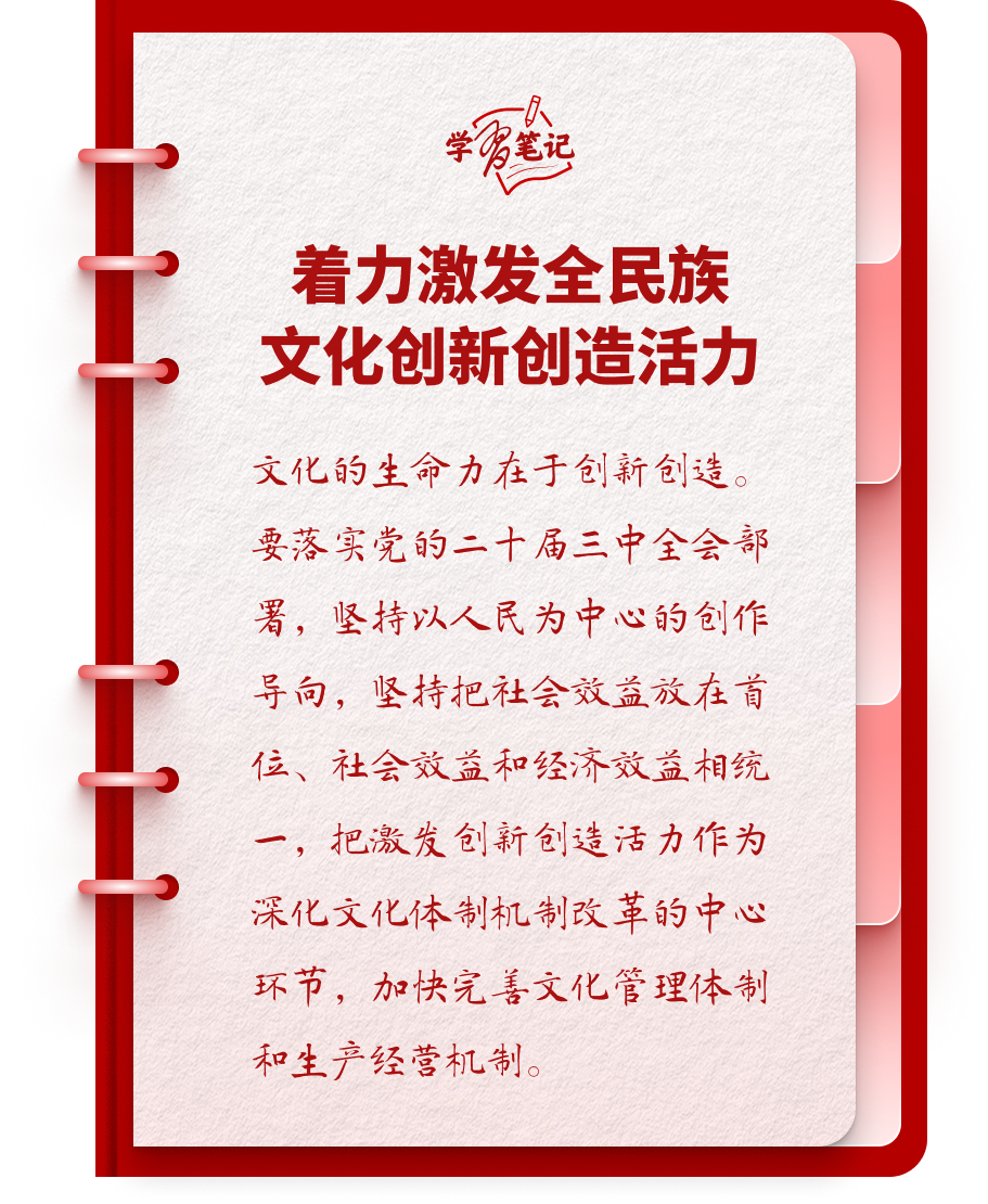 黨的二十大和二十屆三中全會(huì)都明確提出“激發(fā)全民族文化創(chuàng)新創(chuàng)造活力”,三中全會(huì)專門就深化文化體制機(jī)制改革作出全面部署。改革不是為了改而改,而是為了讓創(chuàng)新創(chuàng)造的空間充分釋放、源泉充分涌流。