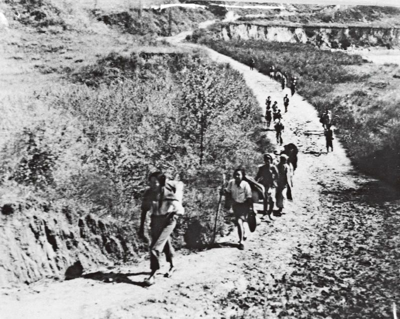 延安時期,全國各地的愛國志士和抗日青年冒著生命危險,沖破敵人重重封鎖,奔赴延安尋求救國真理和道路。圖為愛國青年奔赴延安。?延安革命紀念館供圖