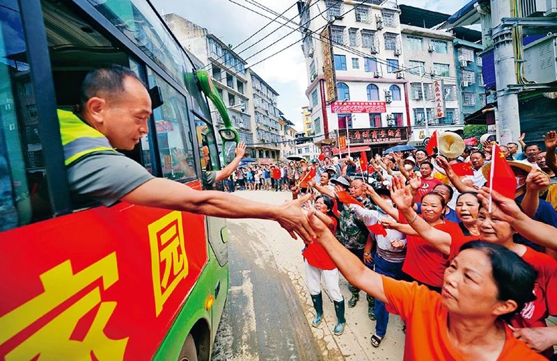 黨的十八大以來,中國共產(chǎn)黨人繼承和發(fā)揚(yáng)黨的優(yōu)良傳統(tǒng)和作風(fēng),始終保持同人民群眾的血肉聯(lián)系。近期,貴州省榕江縣發(fā)生特大洪澇災(zāi)害,黨員干部沖鋒在前,構(gòu)筑起保護(hù)群眾、守護(hù)家園的堅(jiān)固防線。圖為2025年7月3日,當(dāng)?shù)厝罕娮园l(fā)涌上街頭,送別救援隊(duì)伍,表達(dá)感激之情。 新華社發(fā) 楊武魁/攝