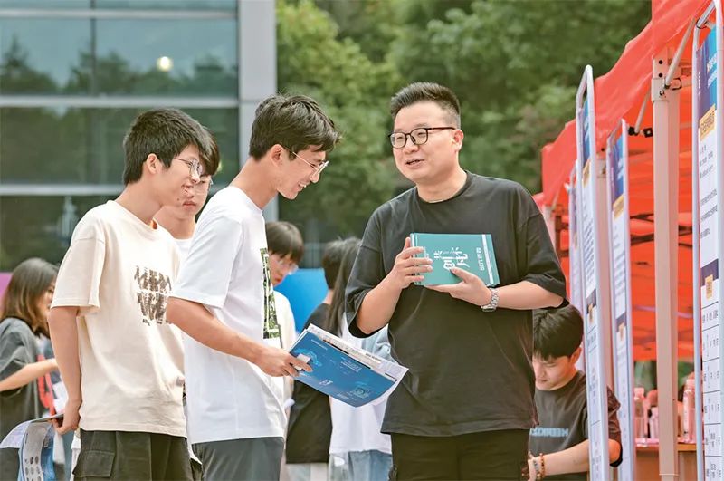 就業(yè)是民生之本、財富之源,各地區(qū)各部門堅決扛起穩(wěn)就業(yè)責任,千方百計穩(wěn)定和擴大就業(yè)。圖為2023年10月19日,2023年大中城市聯(lián)合招聘高校畢業(yè)生秋季專場活動暨“智選金華 青創(chuàng)未來”分會場在浙江省金華職業(yè)技術學院舉行,大學生正與用人單位工作人員交流。 人民圖片 胡肖飛/攝