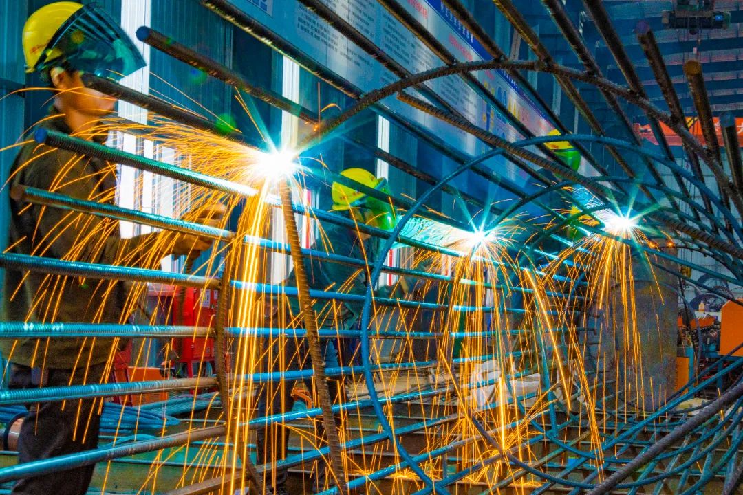 公路特別是高速公路是現(xiàn)代化基礎(chǔ)設(shè)施體系的重要組成部分,是經(jīng)濟社會發(fā)展的重要支撐。圖為2023年9月14日,湖北武漢新港高速公路雙柳長江大橋施工現(xiàn)場,建設(shè)者正在進行鋼筋籠焊接施工。人民圖片 金偉/攝