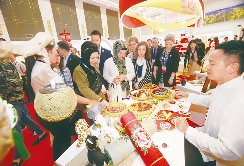 2019年6月27日,“中國(guó)共產(chǎn)黨的故事——習(xí)近平新時(shí)代中國(guó)特色社會(huì)主義思想在河南的實(shí)踐”專題宣介會(huì)在河南蘭考舉行。圖為與會(huì)外方代表近距離感受當(dāng)?shù)孛袼孜幕镊攘Α?中聯(lián)部供圖