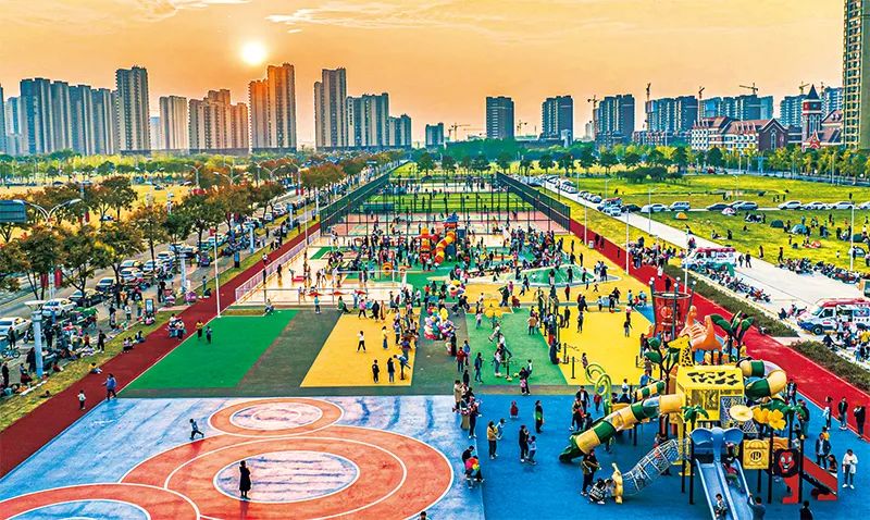 ?推進中國式現(xiàn)代化,必須堅持把實現(xiàn)人民對美好生活的向往作為現(xiàn)代化建設的出發(fā)點和落腳點,不斷增進民生福祉,提高人民生活品質。圖為2022年10月15日,在江蘇省宿遷市蘇宿工業(yè)園區(qū)體育公園多功能運動場,市民正在健身、游玩。人民圖片 陳紅/攝