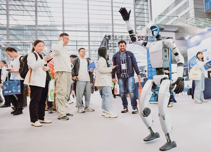 2025年4月9日,第十三屆中國(guó)電子信息博覽會(huì)在深圳會(huì)展中心(福田)開幕,展會(huì)聚焦智能終端、光電顯示、人工智能、大數(shù)據(jù)存儲(chǔ)、基礎(chǔ)元器件、低空經(jīng)濟(jì)等前沿重點(diǎn)領(lǐng)域,吸引了超千家企業(yè)參展。圖為開幕當(dāng)日,觀眾在觀看人形機(jī)器人展示。新華社記者 梁旭/攝