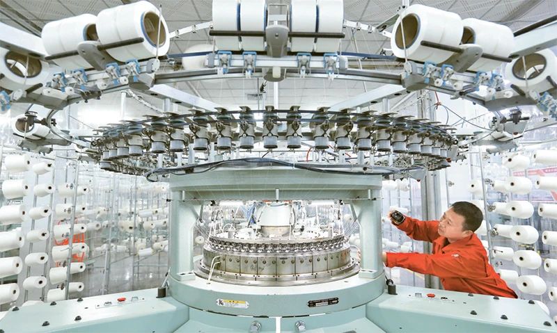 近年來,我國持續(xù)引導紡織企業(yè)加大新技術、新裝備、新工藝的研發(fā)和投入,加快信息化和工業(yè)化融合升級改造。圖為2025年5月19日,山東省青島市即墨區(qū)一家紡織企業(yè)的工人在生產(chǎn)出口海外市場的服裝面料。 新華社發(fā) 梁孝鵬/攝