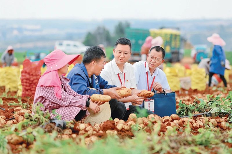 調(diào)查研究是謀事之基、成事之道。圖為2025年5月14日,云南省曲靖市陸良縣紀檢監(jiān)察干部在小百戶鎮(zhèn)普樂村走訪馬鈴薯種植戶,了解鄉(xiāng)村振興產(chǎn)業(yè)發(fā)展相關情況。 人民圖片 王勇/攝