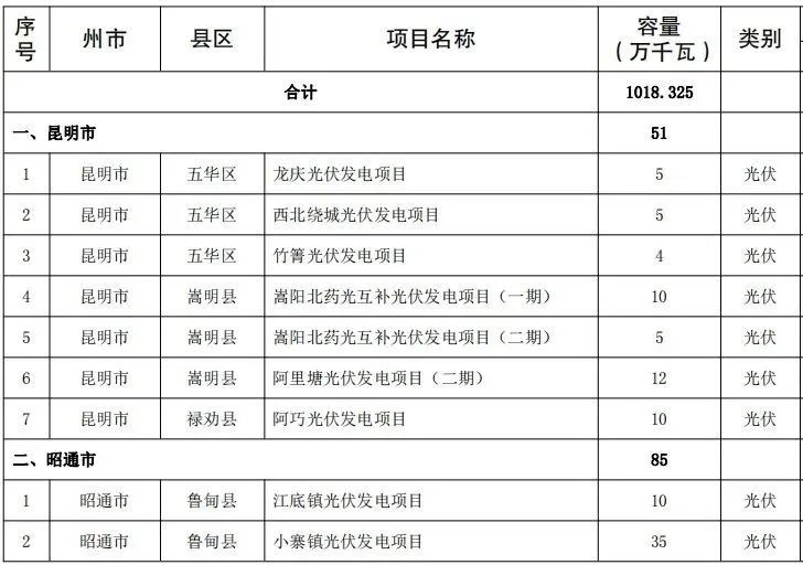 結(jié)合全省新能源項(xiàng)目庫情況,考慮新能源對全省能源投資的重要支撐作用,納入云南省2024年第一批新能源項(xiàng)目開發(fā)建設(shè)方案實(shí)施的項(xiàng)目共141個(gè),裝機(jī)1018.325萬千瓦。