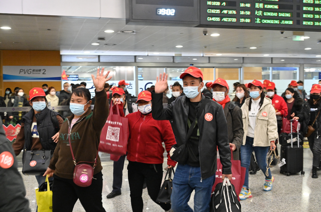 2023年1月30日,云南大理的務(wù)工人員抵達(dá)上海浦東國際機(jī)場。圖源:視覺中國