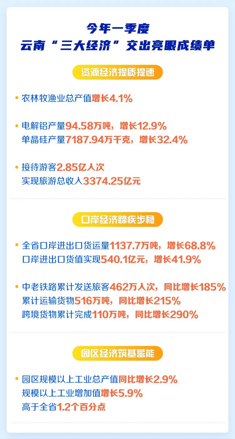 今年以來,全省上下鼓足干勁,全力以赴拼經(jīng)濟(jì),把壯大資源經(jīng)濟(jì)、口岸經(jīng)濟(jì)、園區(qū)經(jīng)濟(jì)作為推動全省經(jīng)濟(jì)高質(zhì)量跨越式發(fā)展的重要抓手,深挖資源利用、口岸提升和園區(qū)建設(shè)潛力,充分發(fā)揮云南比較優(yōu)勢和增長潛力,助力一季度經(jīng)濟(jì)實現(xiàn)平穩(wěn)開局。