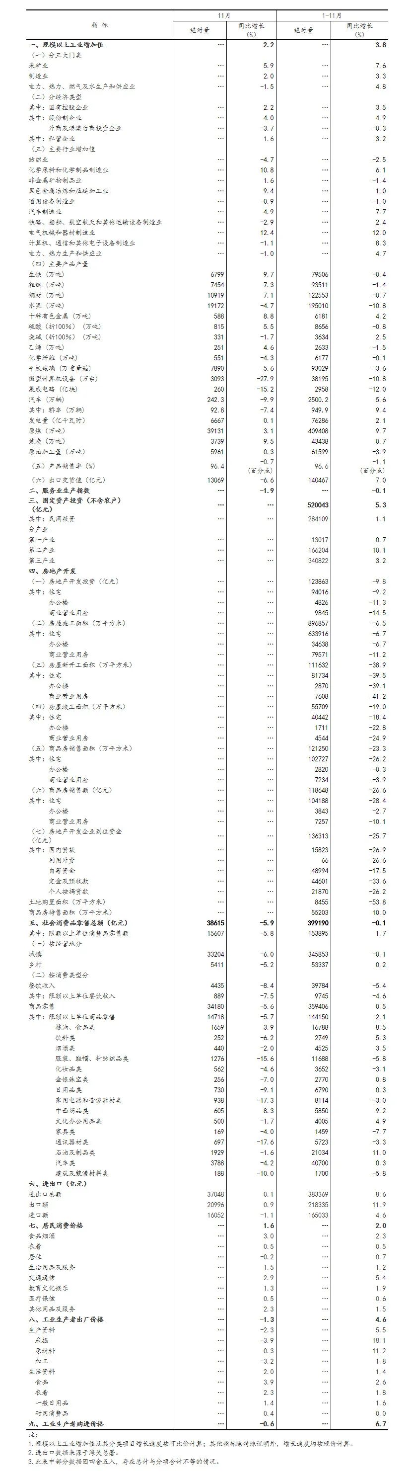 11月份國民經(jīng)濟運行總體延續(xù)恢復(fù)態(tài)勢