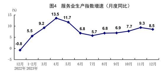 全年服務業(yè)增加值比上年增長5.8%。其中,住宿和餐飲業(yè),信息傳輸、軟件和信息技術服務業(yè),租賃和商務服務業(yè),交通運輸、倉儲和郵政業(yè),金融業(yè),批發(fā)和零售業(yè)增加值分別增長14.5%、11.9%、9.3%、8.0%、6.8%、6.2%。12月份,服務業(yè)生產指數同比增長8.5%;其中,住宿和餐飲業(yè),信息傳輸、軟件和信息技術服務業(yè)生產指數分別增長34.8%、13.8%。1—11月份,規(guī)模以上服務業(yè)企業(yè)營業(yè)收入同比增長8.5%。其中,文化、體育和娛樂業(yè),信息傳輸、軟件和信息技術服務業(yè),租賃和商務服務業(yè)營業(yè)收入分別增長18.9%、12.8%、12.7%。