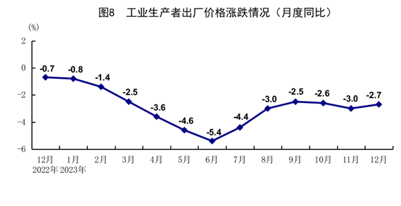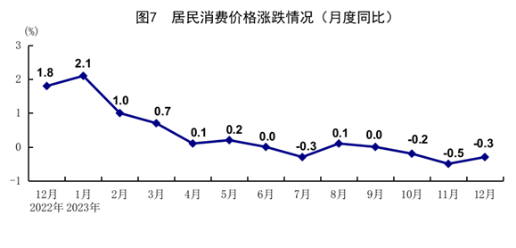 全年居民消費價格(CPI)比上年上漲0.2%。分類別看,食品煙酒價格上漲0.3%,衣著價格上漲1.0%,居住價格持平,生活用品及服務價格上漲0.1%,交通通信價格下降2.3%,教育文化娛樂價格上漲2.0%,醫(yī)療保健價格上漲1.1%,其他用品及服務價格上漲3.2%。在食品煙酒價格中,豬肉價格下降13.6%,鮮菜價格下降2.6%,糧食價格上漲1.0%,鮮果價格上漲4.9%??鄢称泛湍茉磧r格后的核心CPI上漲0.7%。12月份,居民消費價格同比下降0.3%,環(huán)比上漲0.1%。全年工業(yè)生產者出廠價格比上年下降3.0%;12月份同比下降2.7%,環(huán)比下降0.3%。全年工業(yè)生產者購進價格比上年下降3.6%;12月份同比下降3.8%,環(huán)比下降0.2%。