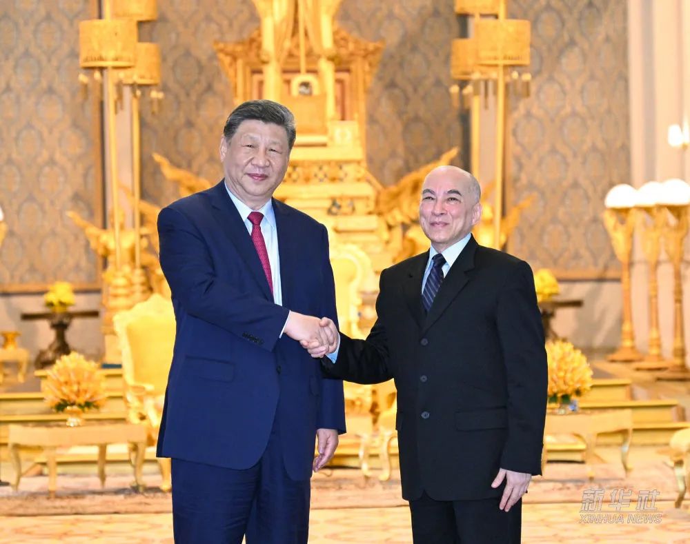 習(xí)近平指出,很高興在西哈莫尼國王登基20周年和柬歷新年之際應(yīng)邀訪問美麗的柬埔寨,謹(jǐn)向柬埔寨人民致以新年祝福。柬埔寨國家建設(shè)事業(yè)蒸蒸日上,相信在西哈莫尼國王庇佑下,勤勞智慧的柬埔寨人民一定能把國家建設(shè)得更加繁榮富強(qiáng)。