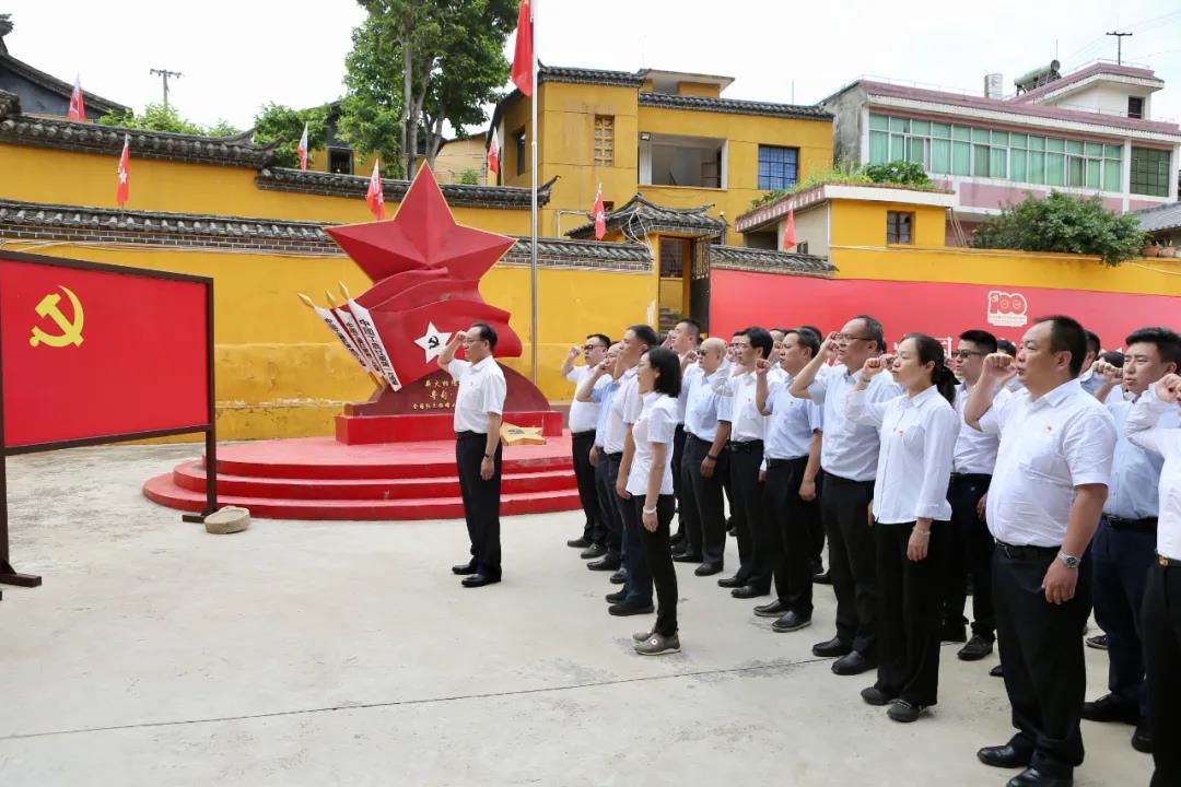 ? ? ? ?在紅軍長征柯渡紀(jì)念館廣場雕塑前,遲中華帶領(lǐng)全體黨員重溫入黨誓詞,再一次向黨旗莊嚴(yán)宣誓。