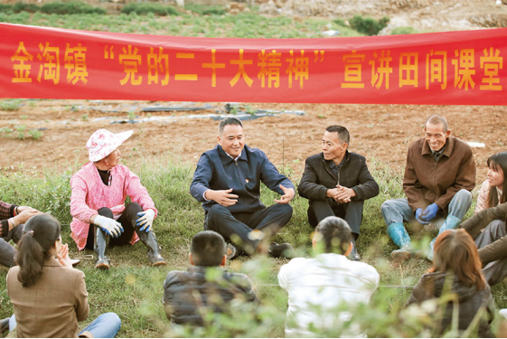 圖為2022年12月18日,理論宣講員在福建省南安市金淘鎮(zhèn)中心村“黨建+”百畝馬鈴薯基地為村民宣講黨的二十大精神。中新社發(fā) 謝貴明/攝