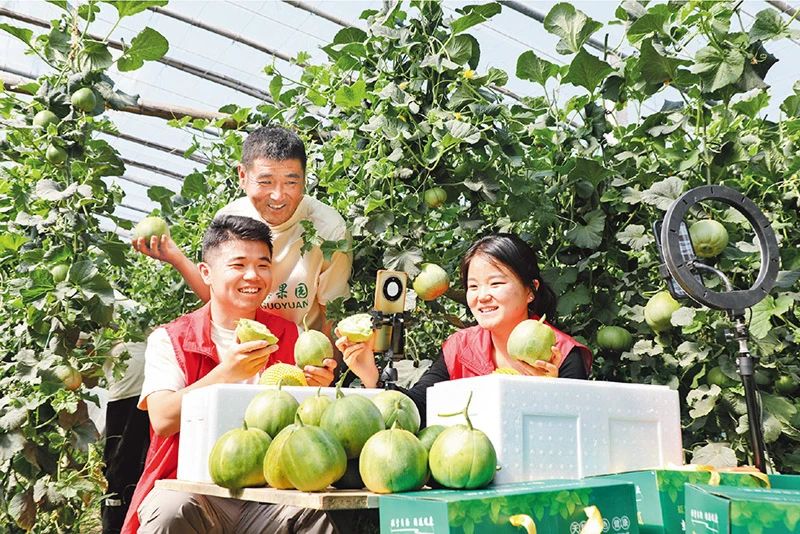 各地黨員、干部大力發(fā)揚(yáng)密切聯(lián)系群眾的作風(fēng),立足崗位擔(dān)當(dāng)作為、服務(wù)群眾。圖為2025年5月11日,河南省新鄉(xiāng)市延津縣南秦莊村甜瓜種植大棚內(nèi),黨員志愿者通過現(xiàn)場直播,幫助農(nóng)戶推銷甜瓜。 人民圖片 張燕/攝