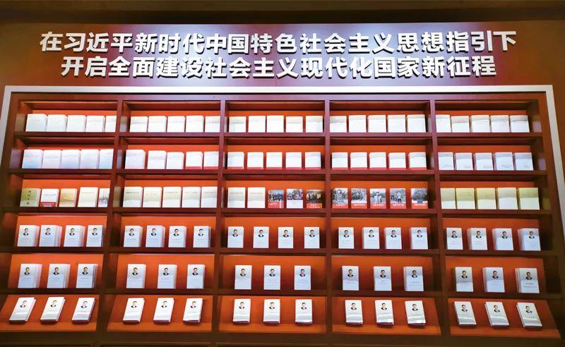 圖為中國共產(chǎn)黨歷史展覽館展出的習近平總書記的部分重要著作以及學習闡釋習近平新時代中國特色社會主義思想的部分重點圖書。劉新武/攝