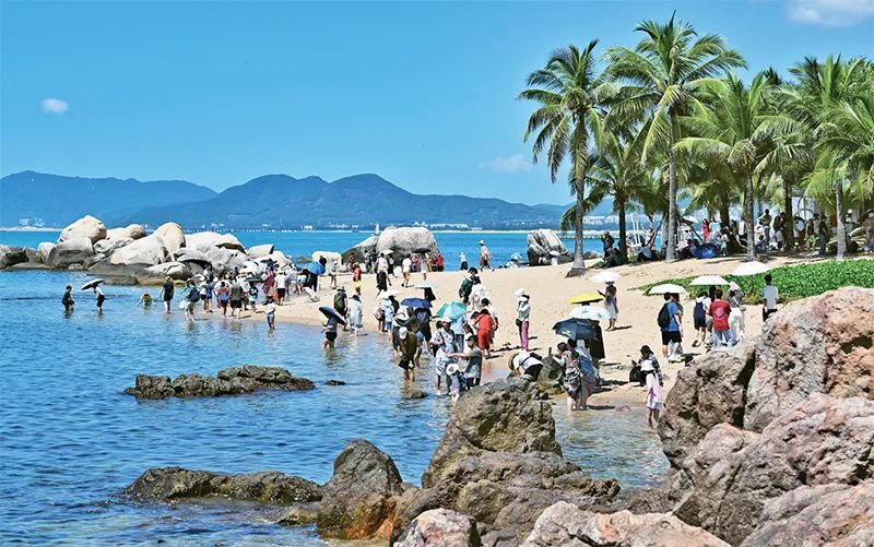 我國經濟社會全面恢復常態(tài)化運行以來,消費回暖跑出“加速度”,成為經濟增長的主拉動力。圖為2023年10月1日,游客在三亞市天涯海角游覽區(qū)游玩。 新華社記者 郭程/攝