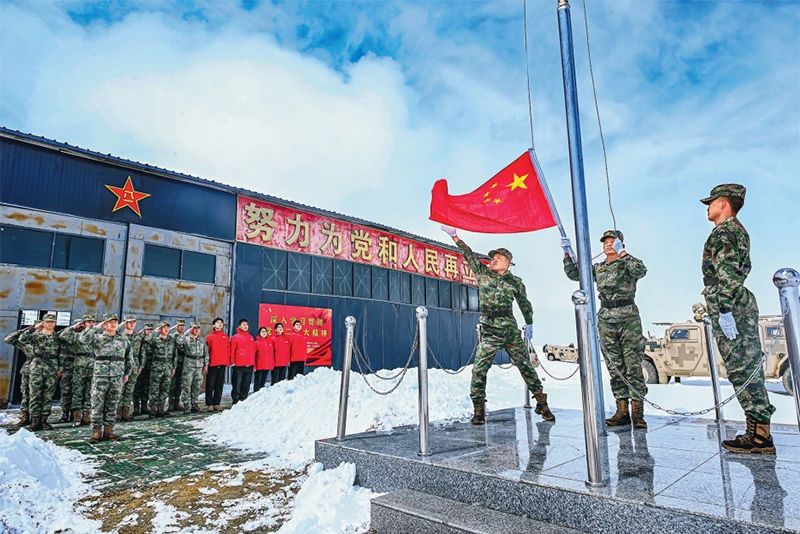 思政課不僅應(yīng)該在課堂上講,也應(yīng)該在社會生活中來講。圖為2025年4月29日,中國人民大學(xué)師生赴西藏自治區(qū)日喀則市開展“大國邊疆”思政調(diào)研,走進(jìn)“高原戍邊模范營”哨所,與官兵共同舉行升旗儀式。 北京市委教育工委供圖
