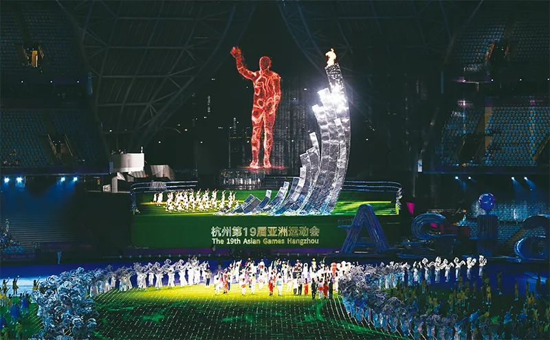 黨的十八大以來,在習(xí)近平新時(shí)代中國特色社會(huì)主義思想指引下,我國各項(xiàng)事業(yè)取得歷史性成就、發(fā)生歷史性變革。在剛剛閉幕的杭州第19屆亞洲運(yùn)動(dòng)會(huì)上,從首創(chuàng)“亞運(yùn)數(shù)字火炬手”到推出電子身份注冊卡、探索使用5.5G新技術(shù)……數(shù)字賦能、科技助力,讓世界看到了中國的科技實(shí)力和東方文化的魅力。圖為2023年10月8日,在杭州亞運(yùn)會(huì)閉幕式上,數(shù)字火炬手“弄潮兒”向現(xiàn)場觀眾揮手致意。 新華社記者 王鵬/攝