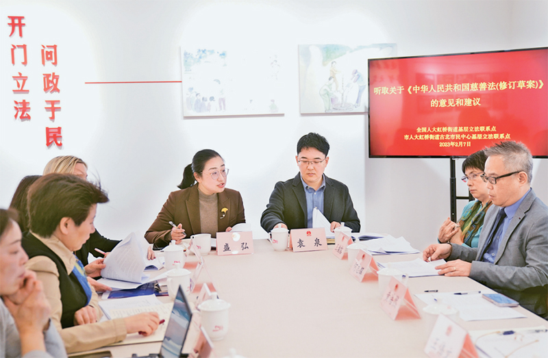 ?圖為2023年2月7日,在上海市長寧區(qū)虹橋街道基層立法聯(lián)系點(diǎn)召開的征詢會(huì)上,工作人員聽取相關(guān)人士對(duì)《中華人民共和國慈善法(修訂草案)》的意見和建議。新華社記者 劉穎/攝