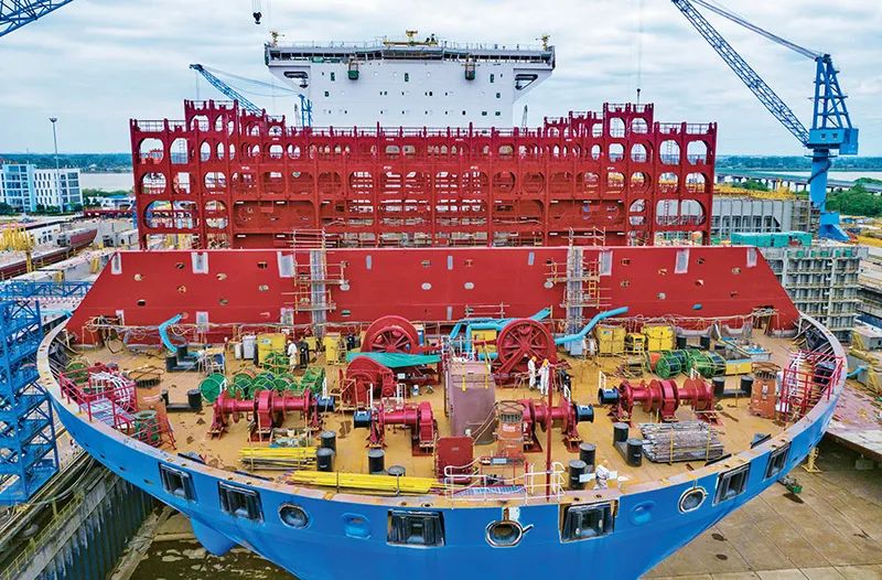 主題教育開展以來,各地區(qū)各部門堅持以習(xí)近平新時代中國特色社會主義思想為指導(dǎo),以強(qiáng)化理論學(xué)習(xí)指導(dǎo)發(fā)展實踐,以深化調(diào)查研究推動解決發(fā)展難題,把學(xué)習(xí)和調(diào)研落實到完成黨的二十大部署的各項任務(wù)中去,形成推動高質(zhì)量發(fā)展的強(qiáng)大動力。圖為2023年5月7日,江蘇揚(yáng)州中遠(yuǎn)海運重工有限公司開足馬力抓生產(chǎn)(無人機(jī)照片)。 新華社發(fā) 周社根/攝