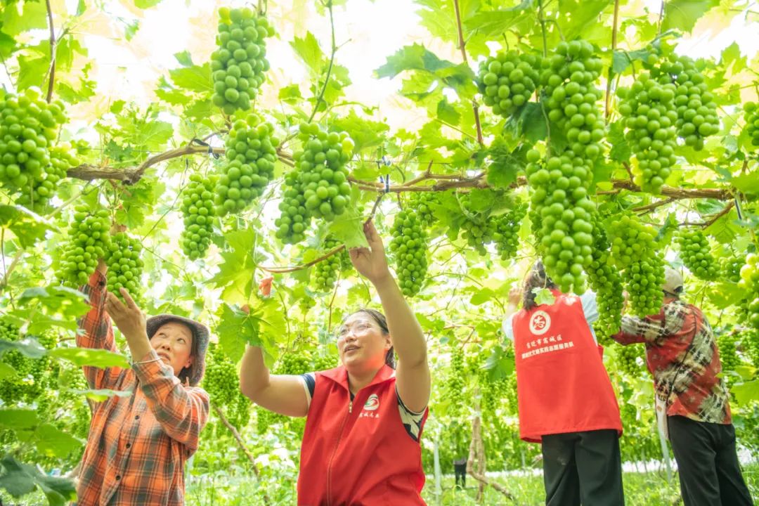 近年來(lái),江蘇省宿遷市宿城區(qū)支口街道大力實(shí)施黨建引領(lǐng)強(qiáng)村富民工程,采取“黨建+合作社+農(nóng)戶(hù)”運(yùn)作模式,組織黨員志愿者走進(jìn)田間地頭生產(chǎn)一線(xiàn),引導(dǎo)群眾因地制宜發(fā)展山楂、葡萄等特色產(chǎn)業(yè)種植,拓寬增收渠道,助力鄉(xiāng)村振興。圖為2023年6月30日,在宿遷市宿城區(qū)支口街道探楚社區(qū)葡萄種植基地,黨員志愿者和果農(nóng)一起管護(hù)葡萄。 ?人民圖片 徐江海/攝