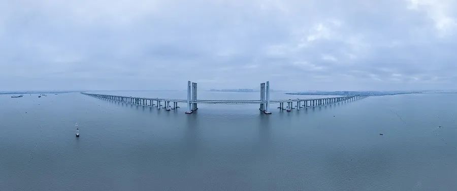 2023年2月3日,我國(guó)首條跨海高鐵——福廈高鐵進(jìn)入靜態(tài)驗(yàn)收階段,標(biāo)志著全線主體工程及其配套工程建設(shè)已基本完成。圖為福廈高鐵泉州灣跨海大橋(無(wú)人機(jī)合成照片)。新華社記者 周義/攝